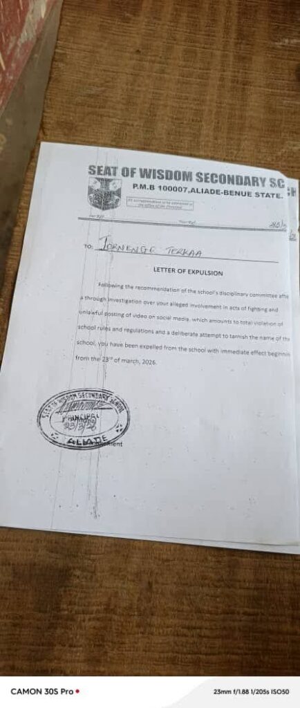Sources confirmed that the affected parents did not challenge the decision but instead expressed disappointment over their children’s conduct. Seat of Wisdom Secondary School, Aliade, is widely regarded as a disciplined institution with strict rules against misconduct. Education observers say the incident highlights ongoing challenges schools face in managing student behaviour outside closely monitored environments.