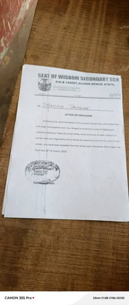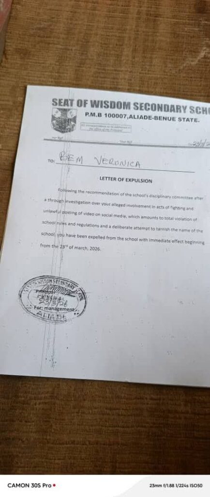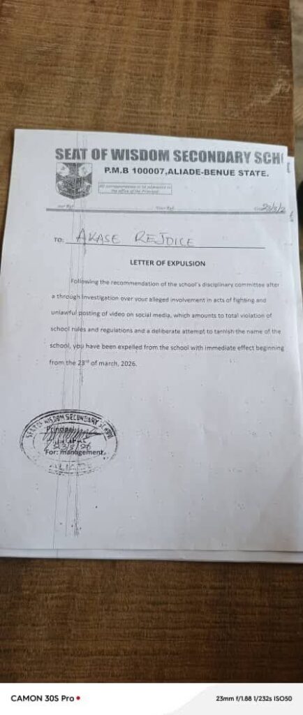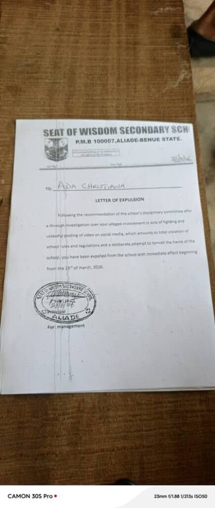 A violent clash involving female students of Seat of Wisdom Secondary School, Aliade, Benue State, has triggered disciplinary action, with 11 students expelled after videos of the incident surfaced online.