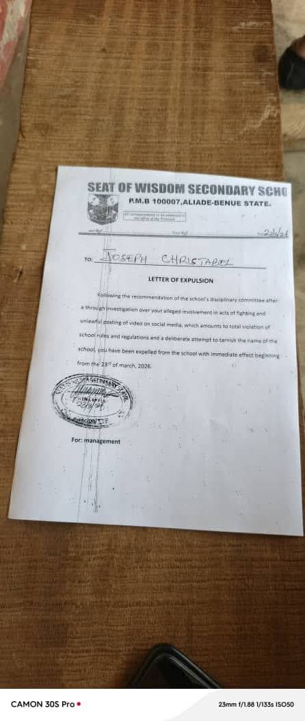 Sources confirmed that the affected parents did not challenge the decision but instead expressed disappointment over their children’s conduct. Seat of Wisdom Secondary School, Aliade, is widely regarded as a disciplined institution with strict rules against misconduct. Education observers say the incident highlights ongoing challenges schools face in managing student behaviour outside closely monitored environments.
