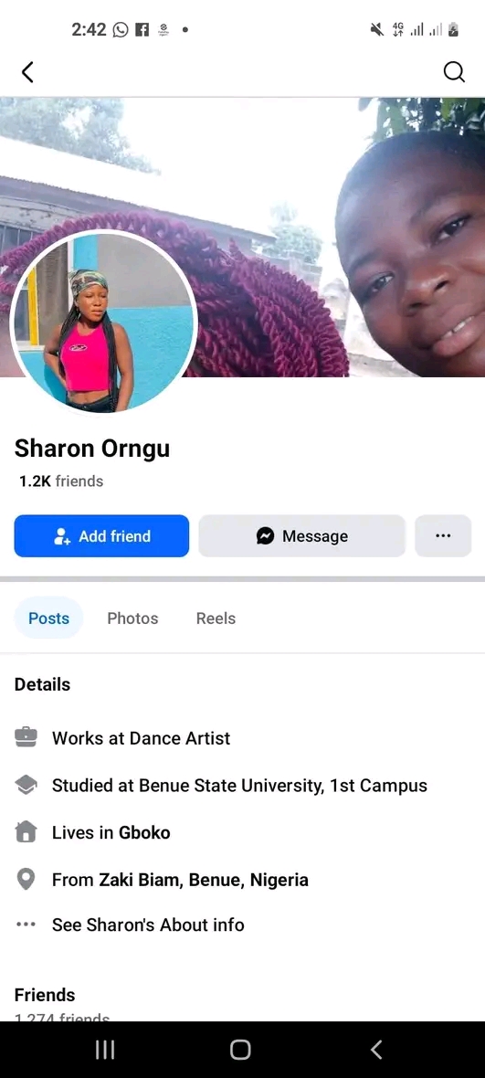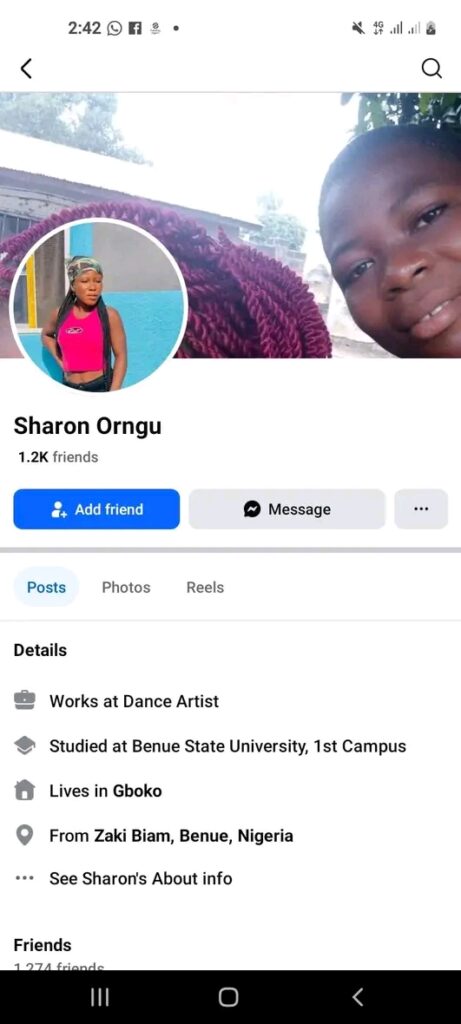 A serious accusation of human trafficking has emerged against a woman identified as Sharon Nadoo Shiter from Zaki-Biam and Gboko areas in Benue State. In a Facebook post dated January 7, 2026, social activist D’naked Elder Sughnen Yaaya claimed that Sharon is actively involved in trafficking young girls from Benue to Ghana via Lagos.