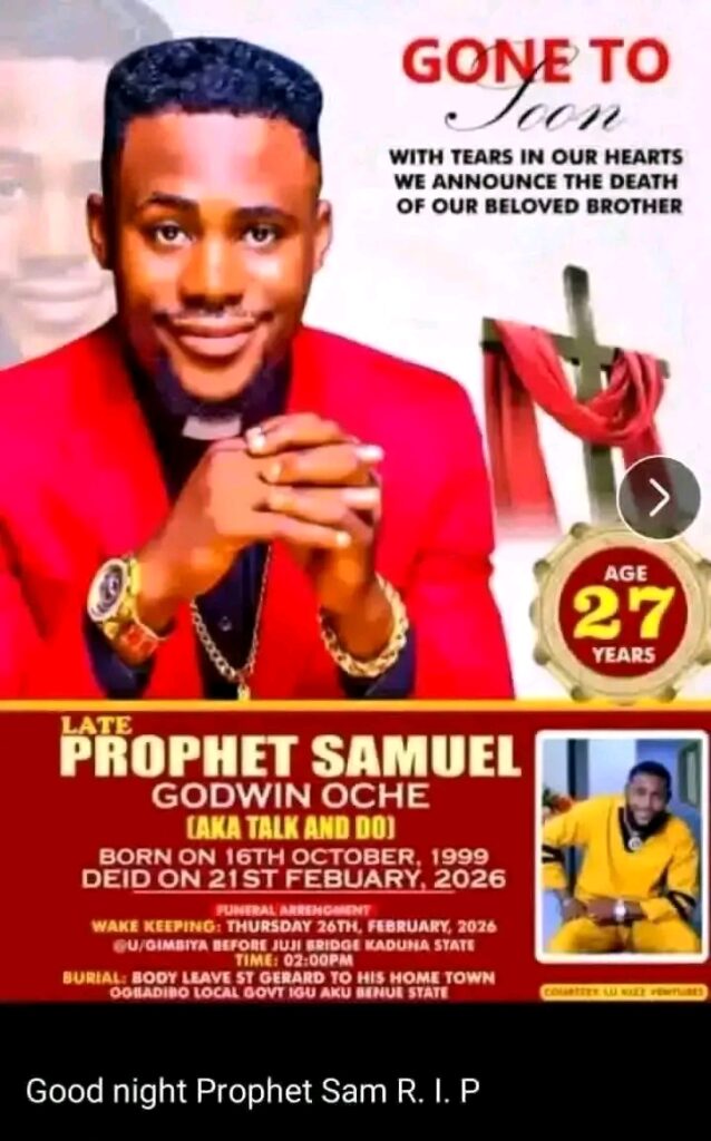 A Kaduna-based preacher of Benue origin, Mr. Samuel Goodwin Oche, popularly known as “Talk and Do,” has reportedly died by suicide following the viral circulation of explicit videos allegedly showing him in sexual acts with other men.