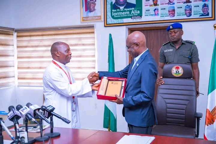 Benue State Governor, Rev. Fr. (Dr.) Hyacinth Iormem Alia, today hosted a high-level delegation from the Consortium of Caritas organisations at Government House, Makurdi, in a significant step to deepen collaboration aimed at providing durable solutions for Internally Displaced Persons (IDPs) and vulnerable communities affected by protracted conflict.