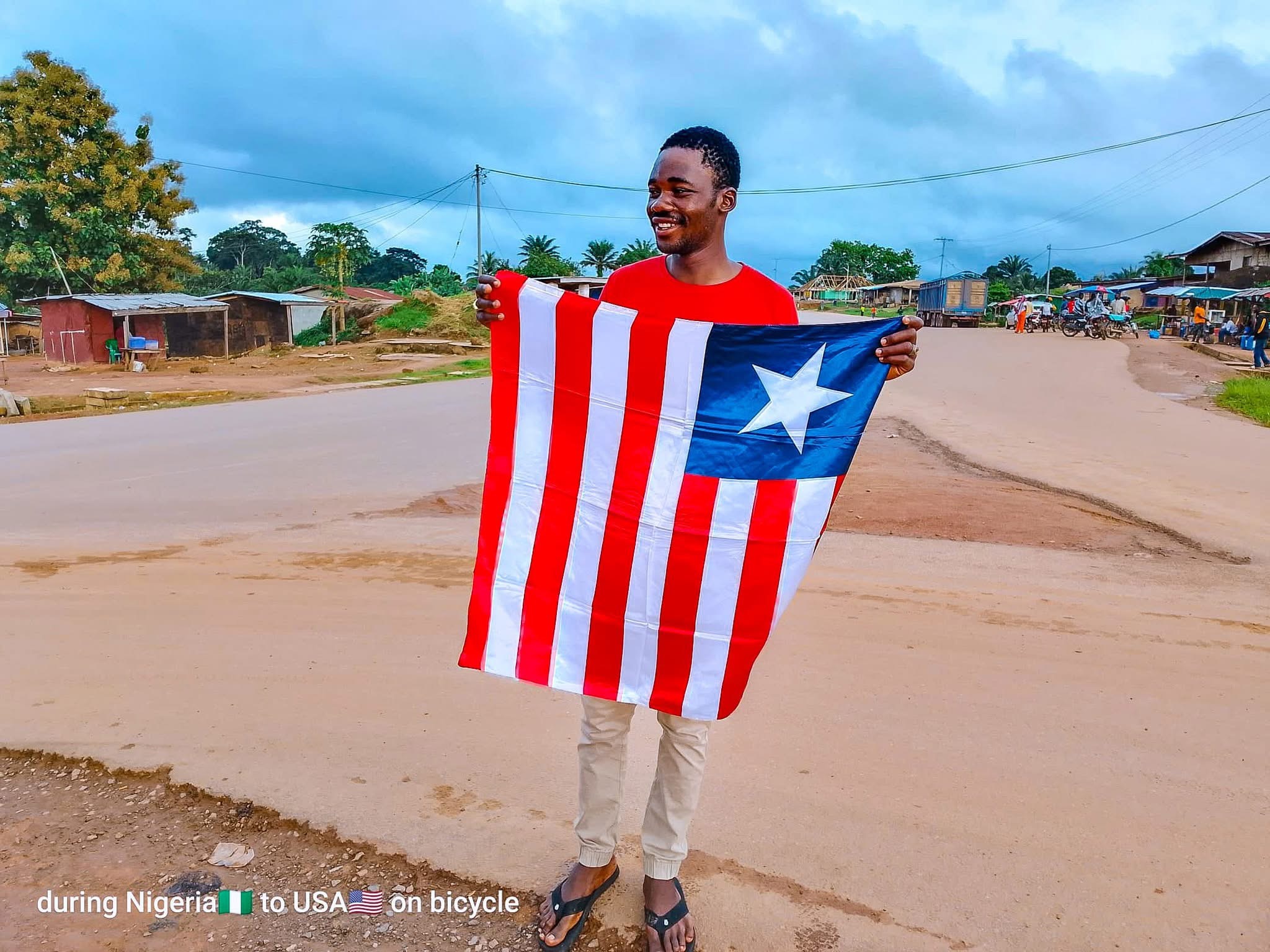 Arriving in Liberia on this symbolic day, Emmywuks expressed how the journey feels like destiny itself. “For me, arriving here on this very day feels like destiny itself. As I pedal across Africa, carrying the dream of Nigeria to the USA on a bicycle, I see Liberia’s flag as a reminder that no journey, no matter how tough, is without meaning,” he noted. Each road, border, and challenge, including his swollen legs, serves as a testament to the shared resilience of Africans.