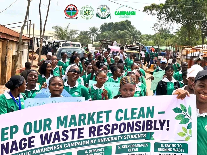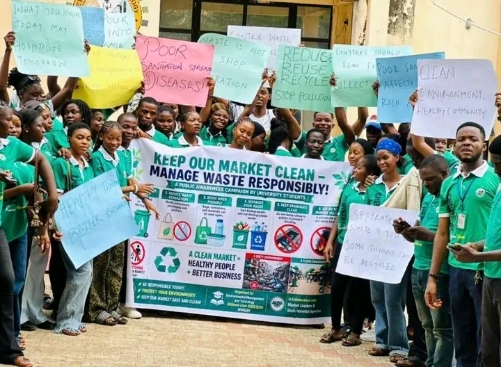 In a commendable initiative, students from the Department of Chemistry at the Michael Okpara University of Agriculture Umudike (MOAUM) have taken a bold step towards promoting environmental sustainability. A group of 400-level students in Environmental Management and Toxicology recently organized a sensitization awareness campaign at Wurukum Roundabout Market in Makurdi, Benue State.