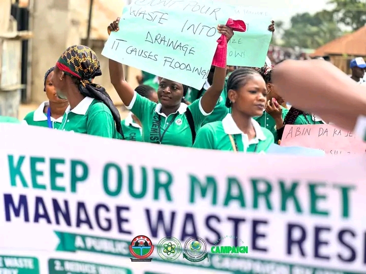 The campaign, tagged “Report on Sensitization Awareness Campaign on Responsible Use of the Environment,” was designed to address the growing concerns of pollution, improper waste disposal, and poor environmental practices, particularly in busy market areas where human and commercial activities are intense.