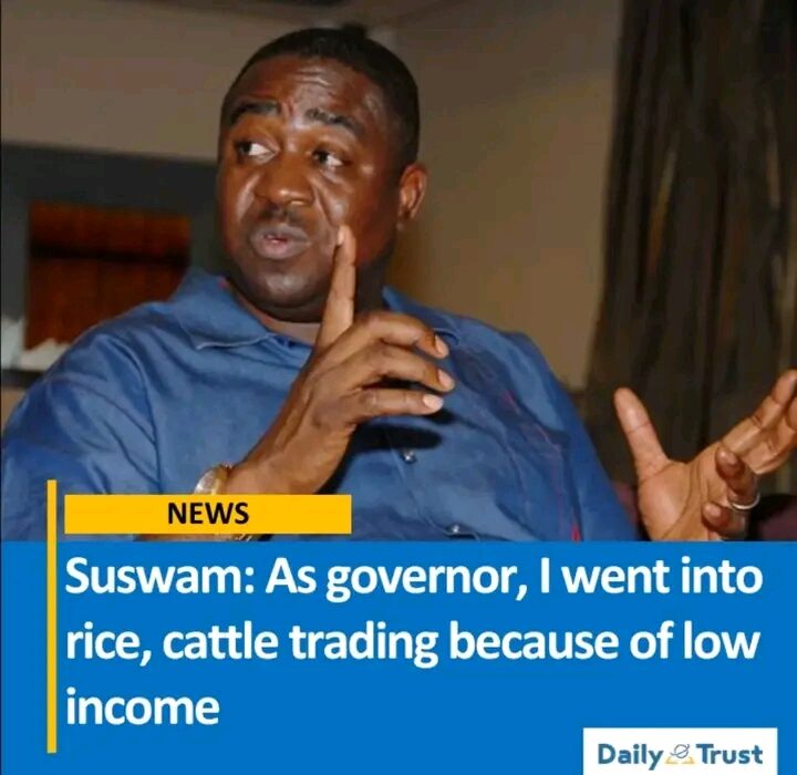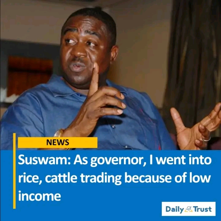 The statement has ignited discussions across social media platforms, with many eager to learn more about the context of his testimony. For a detailed account, the full article is available on the Daily Trust website: [https://dailytrust.com/suswam-as-governor-i-went-into-rice-cattle-trading-because-of-low-income/?noamp=available](https://dailytrust.com/suswam-as-governor-i-went-into-rice-cattle-trading-because-of-low-income/?noamp=available).