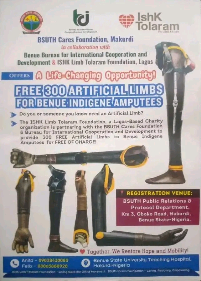 In a heartwarming development, the Benue State University Teaching Hospital (BSUTH) in Makurdi has launched a groundbreaking initiative to provide free artificial leg and hand replacements for indigenous amputees. Announced earlier today at 4:51 PM, this program aims to restore hope, mobility, and confidence to countless individuals across the state who have lost their limbs.