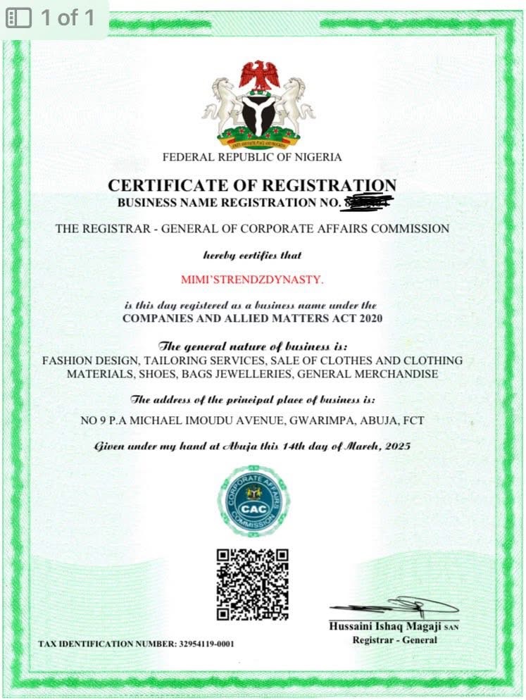 The twist? She’s asking her mentor for a whopping 12 to 15 million naira loan to boost her brand, MIMI!TRENDZDYNASY, a registered business she’s been nurturing for over three years. Mercy’s not shy about it either—sharing pics of her tattoo (complete with a cross and some serious ink commitment) alongside a certificate of registration to prove her hustle is legit. She even threw in a sassy note, saying she’d be “forever grateful” if the cash rolls in, hinting that empowering her could uplift a whole generation!