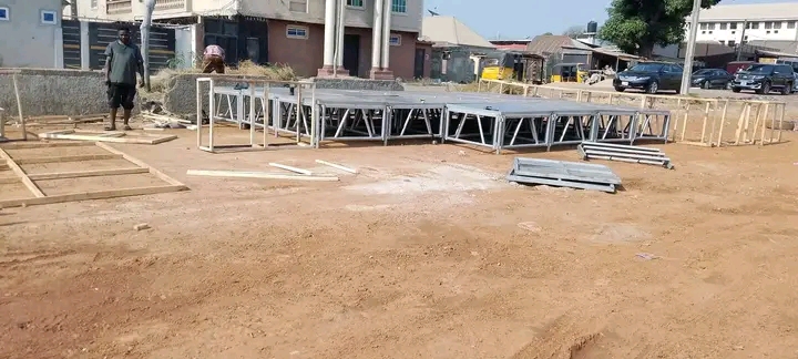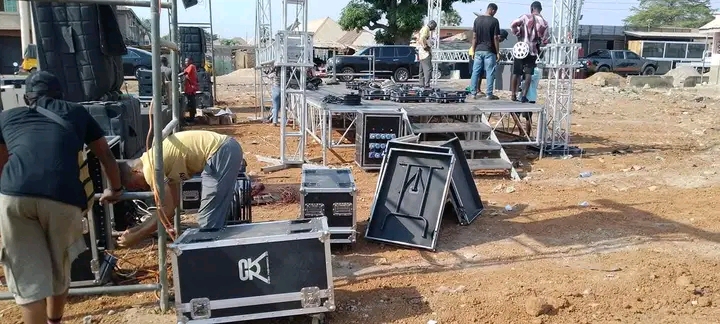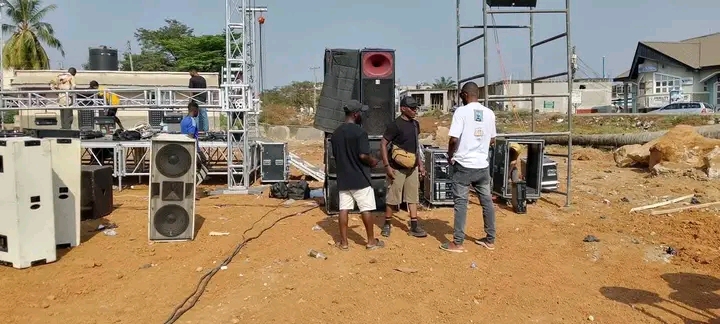 A recent social media post by D’naked Elder Sughnen, shared on New Year’s Eve, showcased ongoing preparations with workers actively setting up an elaborate stage, massive sound systems, lighting rigs, and scaffolding at the venue. The images depict a bustling site with technicians handling professional audio equipment and constructing what promises to be an impressive performance area.
