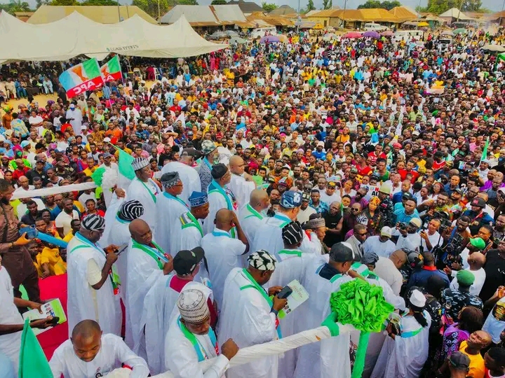 The event, captured in viral photos circulating on social media, showcased an overwhelming crowd stretching across multiple venues, with attendees donning party colors, waving flags, and chanting in unison. The sheer scale of the gathering—estimated to be one of the largest political defections in the state’s recent history—underscored a growing wave of support for the APC’s vision in the area.