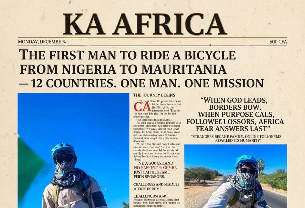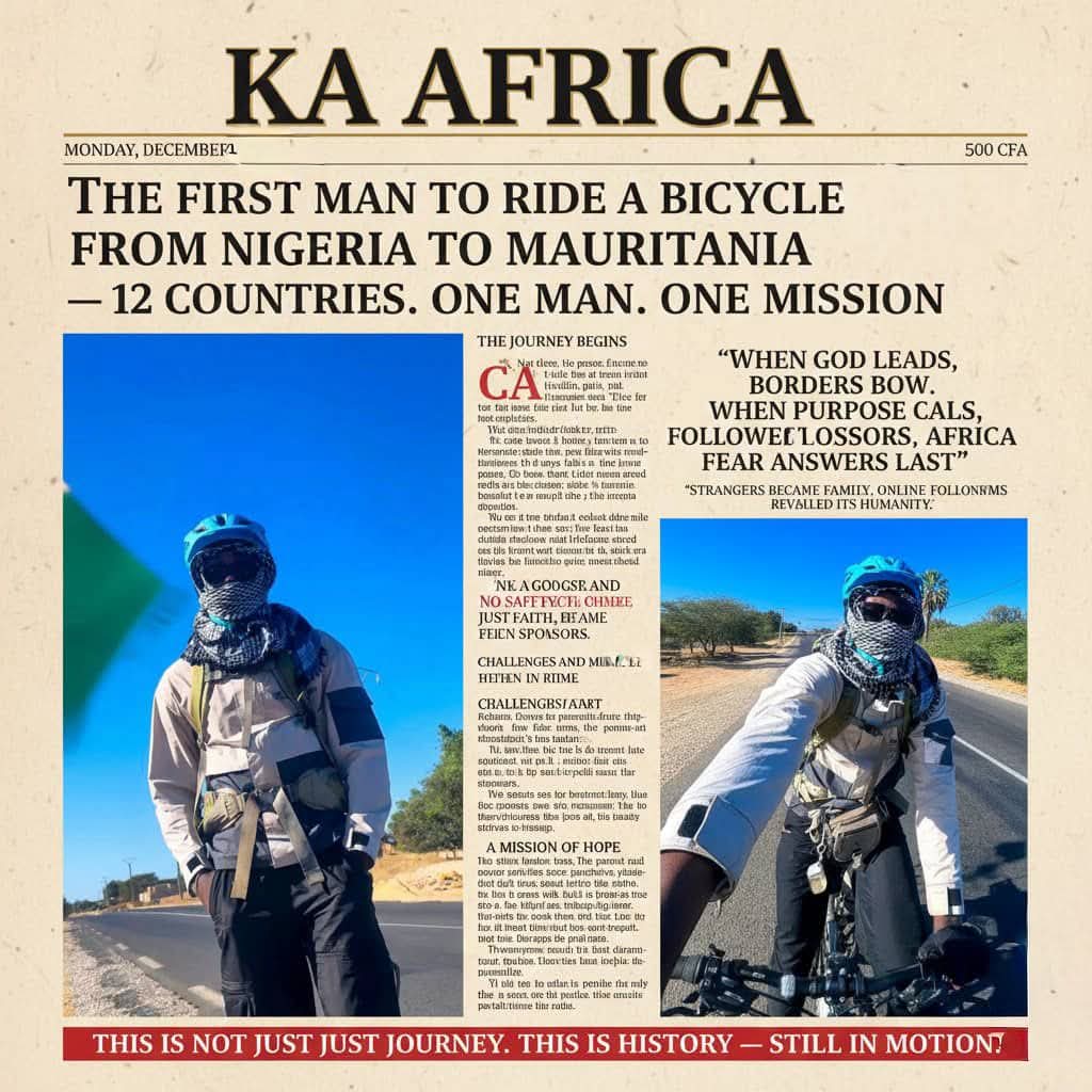 Upon reaching Mauritania in mid-December 2025, after crossing into the vast desert nation from Senegal, Myam pushed on to the capital, Nouakchott. The recognition from KayAfrica came shortly after, capturing the milestone in a newspaper-style feature that celebrated not just the physical accomplishment but the spirit behind it: a mission of hope, resilience, and fearless pursuit of purpose.
