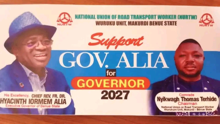 The Chairman of the National Union of Road Transport Workers (NURTW) Wurukum Unit in Makurdi, Comrade Nyikwangh Thomas Terhide, has rallied strong support for Governor Rev. Fr. (Dr.) Hyacinth Iormem Alia ahead of his expected re-election bid in 2027.