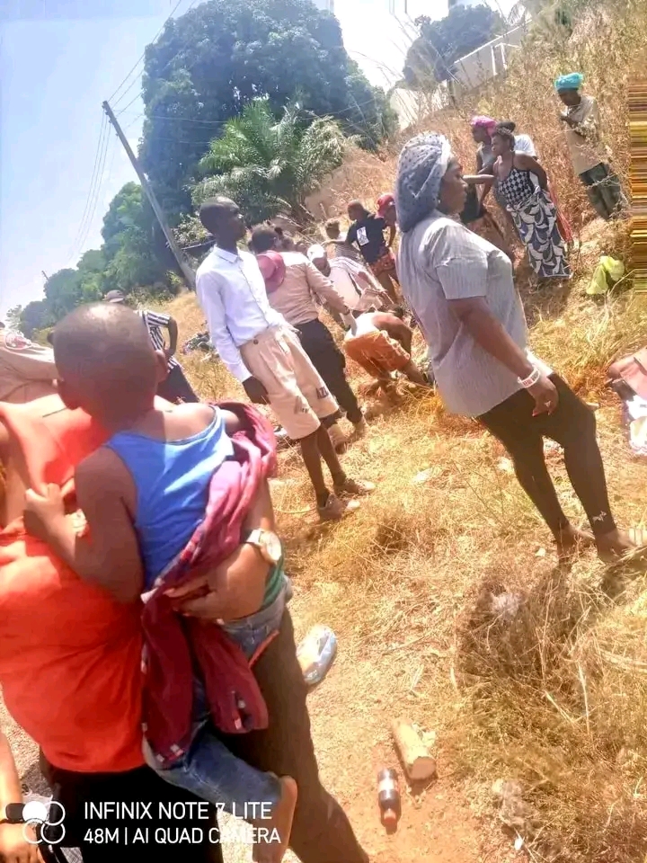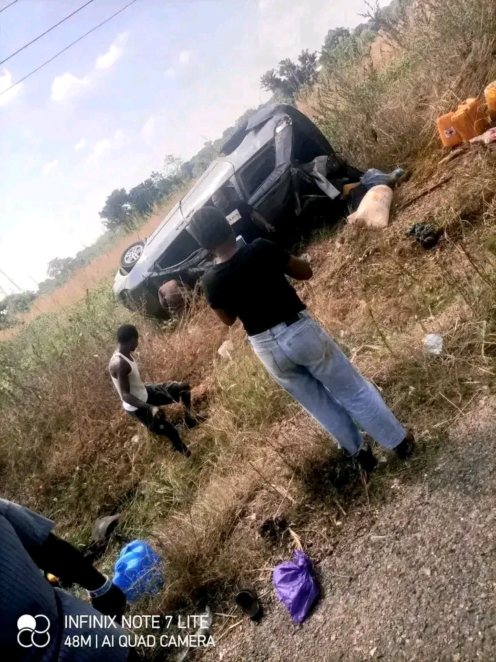 According to eyewitness accounts shared on social media by Cyprian Gbash, the crash involved a vehicle that veered off the road and overturned, prompting an immediate response from passers-by and nearby residents who rushed to assist the injured. Photos circulating online show the damaged vehicle lying on its side in a ditch, with community members carrying victims and providing first aid at the scene.