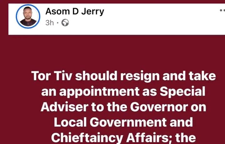 Activist Asom Jerry Publicly Shamed for Demanding Tiv King’s Resignation