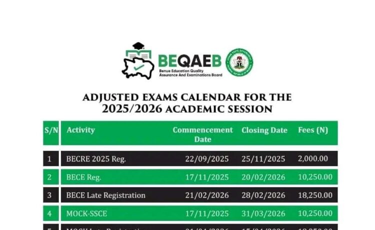 The Benue State Education Quality Assurance and Examinations Board (BEQAEB) has announced that early registration for the 2026 Basic Education Certificate Examination (BECE/FSLC) will close on Friday, February 20, 2026. In a notice issued on Thursday, February 19, 2026, the...