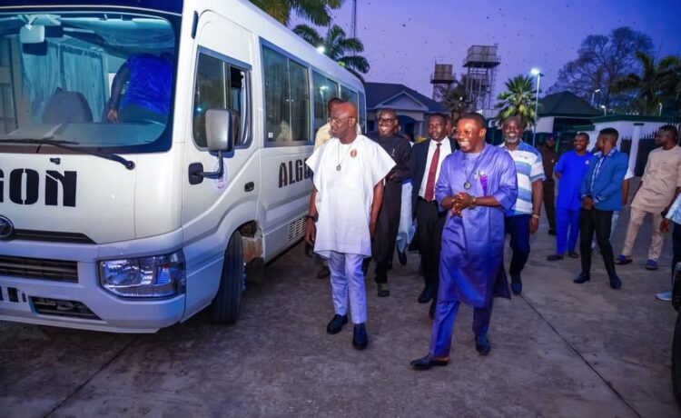 Benue ALGON Presents New Coaster Bus to Governor Alia in Support of 2026 Rural Development Agenda
