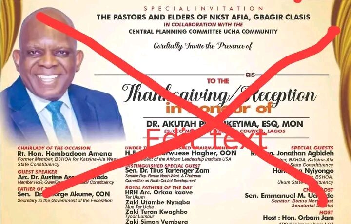 A high-profile thanksgiving service scheduled for Sunday, 7th December 2025, in honour of the Executive Secretary of the National Pension Commission and former Attorney-General of Benue State, Barr. Pius Akutah, at NKST Primary School Afia, Ukum Local Government Area, has...