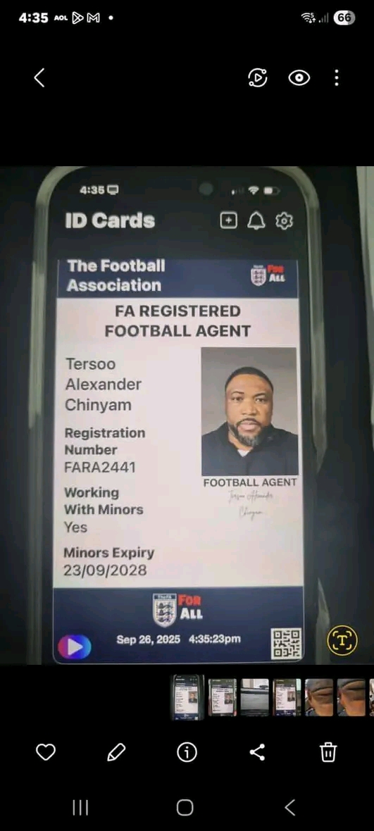 A remarkable story of excellence and determination is emerging from Benue State, as Mr. Tersoo Alexander Chinyam—a native of Turan, Kwande Local Government Area—continues to shine on the global football scene. Now based in the United Kingdom, Mr. Chinyam stands as the only FIFA-licensed football agent originating from Benue State, a milestone rarely achieved across Nigeria’s North Central region.