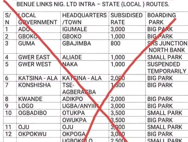 Benue Links Nigeria Limited has officially distanced itself from a widely circulated transport fare reduction list currently making the rounds on social media, labelling it completely fake and unauthorized. In a statement released on Friday, 5th December 2025, the management...