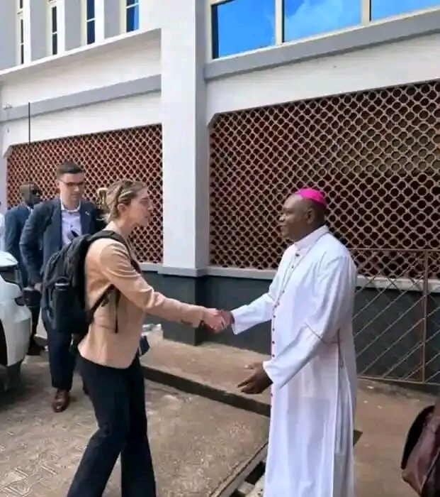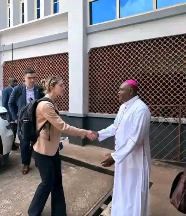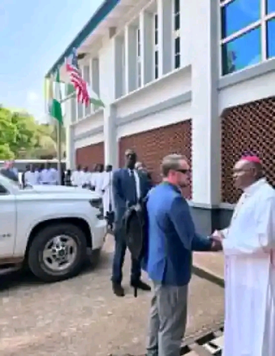 Images circulating widely on social media show the delegates, some in congressional pins, being warmly welcomed by the prelates in cassocks and purple ecclesiastical attire, with the American and Nigerian flags fluttering side by side in front of the Diocesan Secretariat.