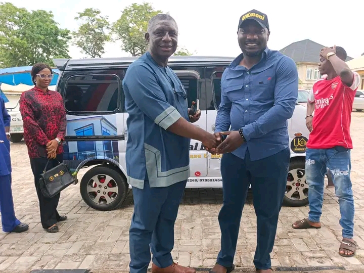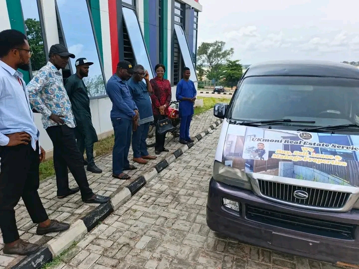 UKmoni Real Estate Services marked a significant milestone today with the official unveiling of its brand-new company bus. The event took place at the UKmoni Real Estate Services office, officiated by the Commissioner of Benue State for Lands, Survey, and Solid Minerals, Rev. Dr. Frederick L. Ikyaan, PhD. The ceremony saw the presence of key staff and stakeholders, highlighting the company’s commitment to excellence.