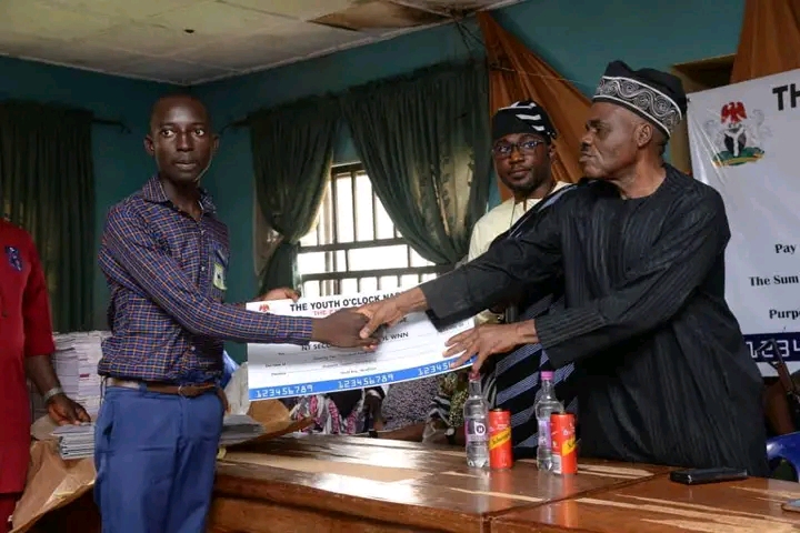 The occasion, attended by parents, students, traditional rulers, and local dignitaries, featured the presentation of full scholarships to third, second, and first-position winners in the 100-metre race, sack race, bottle race, debate, and quiz competitions held during the 2025 Children’s Day Celebration. Additionally, the Head Boy and Head Girl of both secondary and primary schools that participated in the event received cheques covering three terms of school fees for the 2025/2026 academic session. Six students from higher institutions also benefited, with cheques covering tuition and accommodation.